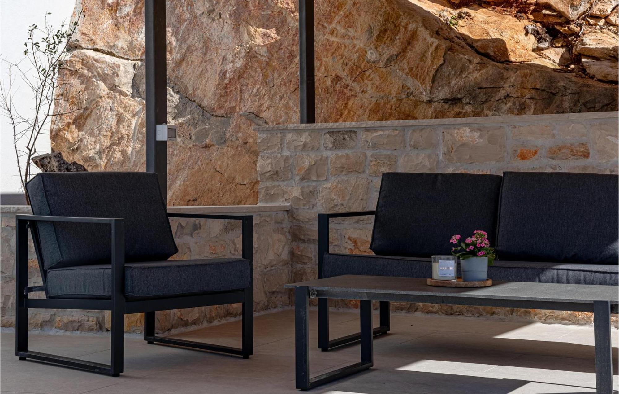 Modern Amenities: The property includes air-conditioning, a fully equipped kitchen, sauna, and free WiFi. Additional facilities include an outdoor fireplace and outdoor seating area.