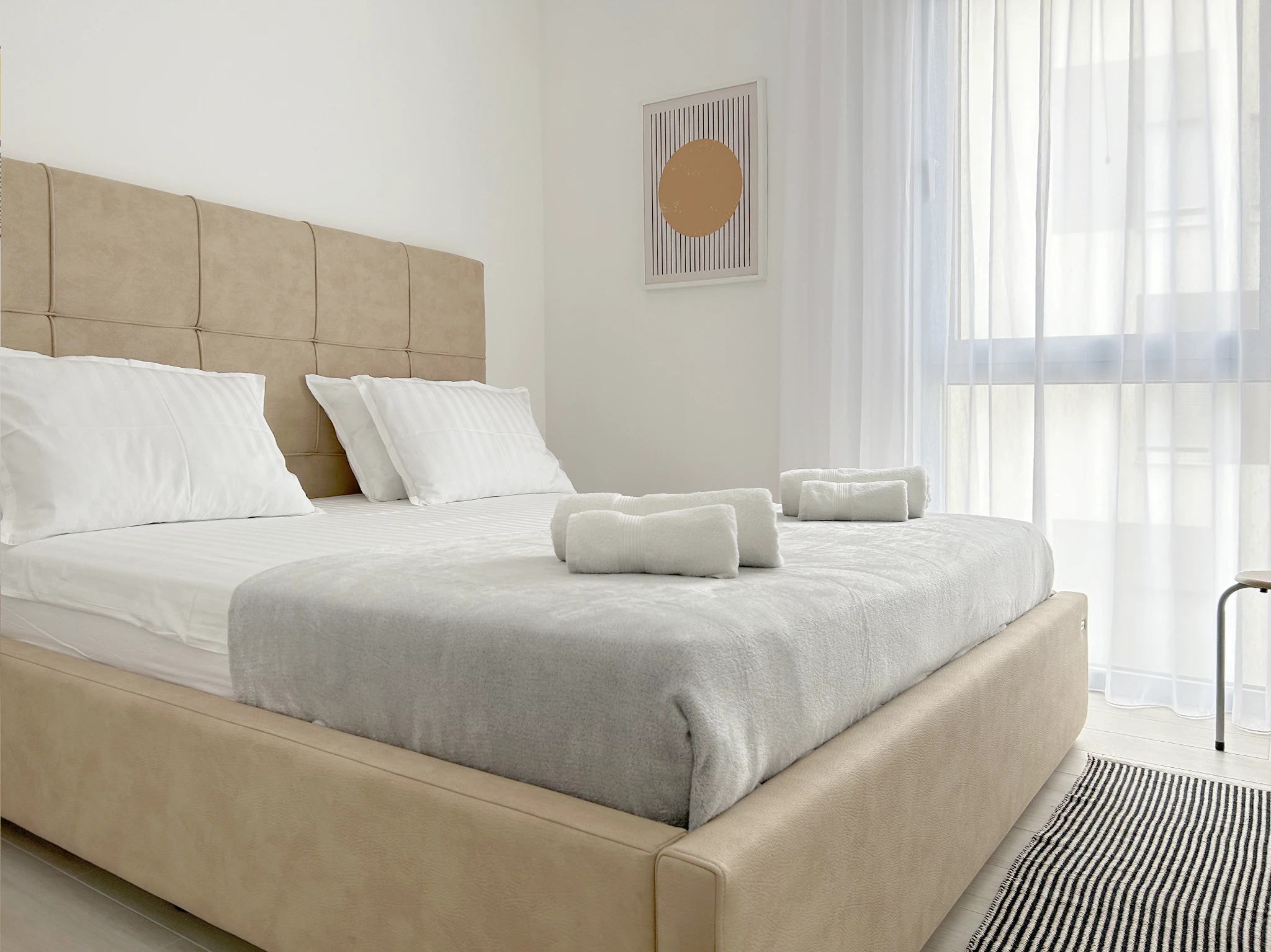 Modern Amenities: Guests enjoy free WiFi, air-conditioning, and a fully equipped kitchen with a dishwasher and washing machine. Additional amenities include a work desk, streaming services, and free toiletries.