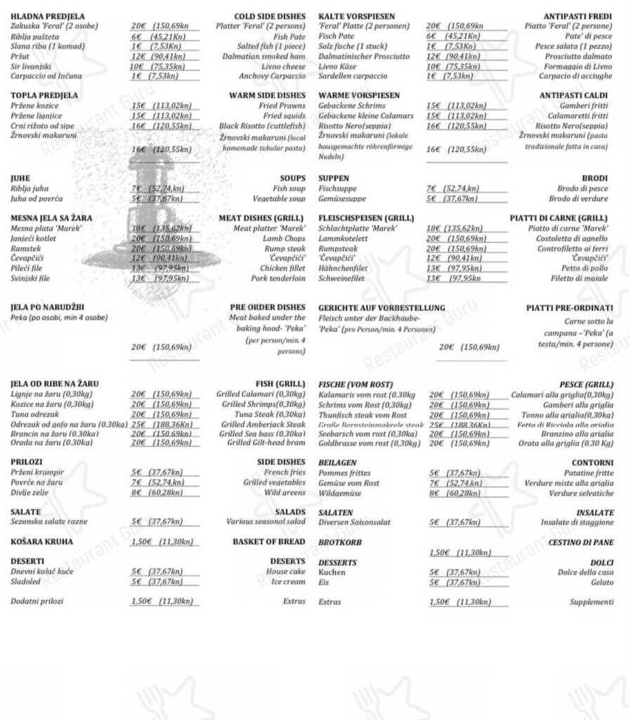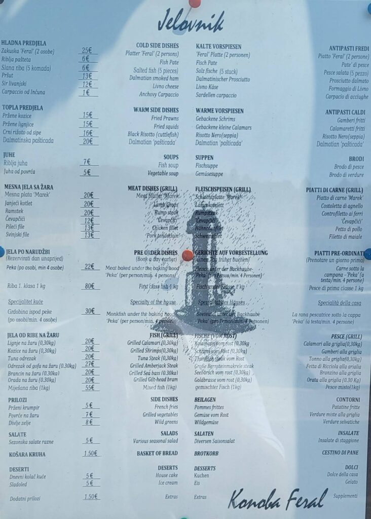 This restaurant is an ideal choice if you are in the mood for Mediterranean and Croatian cuisines. Come to Konoba Feral to taste perfectly cooked grilled sea bass, grilled meat and fried fish. You will be offered delicious wine.