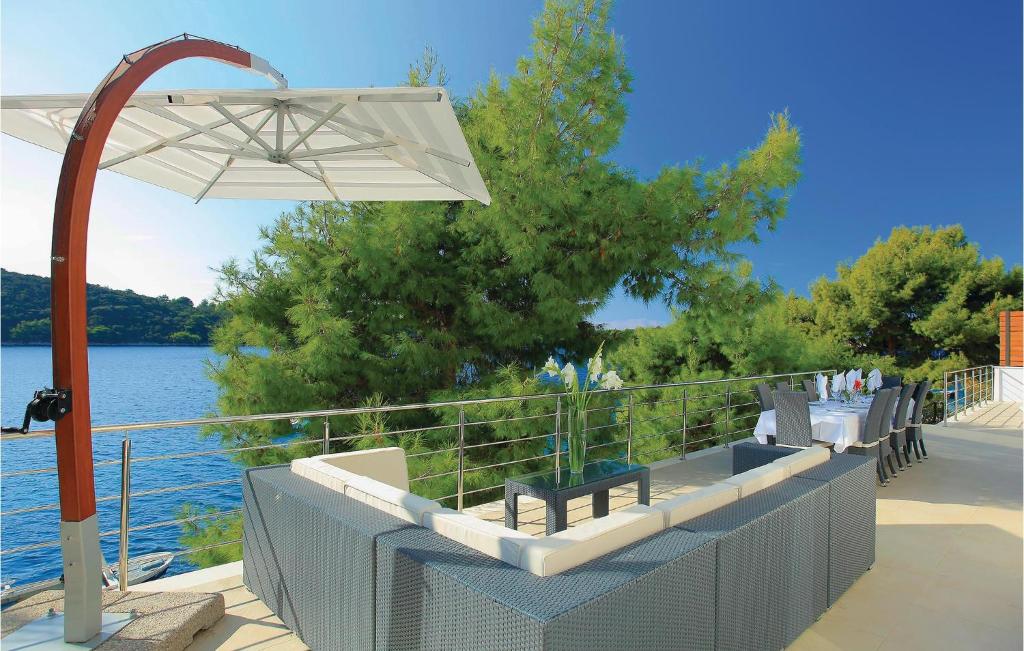 Beachfront Location: Six-Bedroom Holiday Home In Karbuni in Prizba offers direct beachfront access and stunning sea views. Guests can relax by the outdoor swimming pool or enjoy the sun on the spacious terrace.