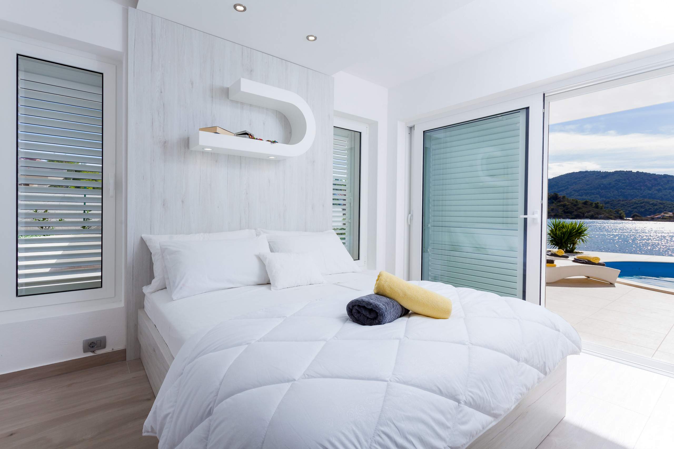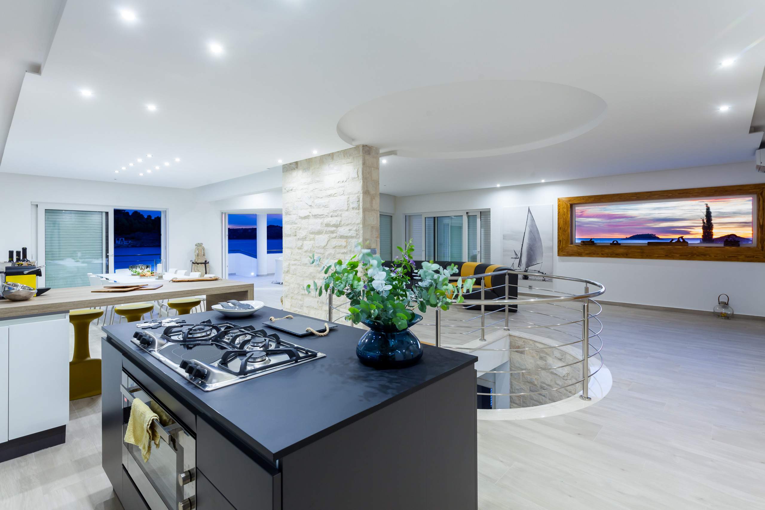 Spacious Accommodation: Villa Soleil in Vela Luka offers a spacious layout with four bedrooms and five bathrooms. The living room features a sofa and a dining area, ensuring comfort for all guests.